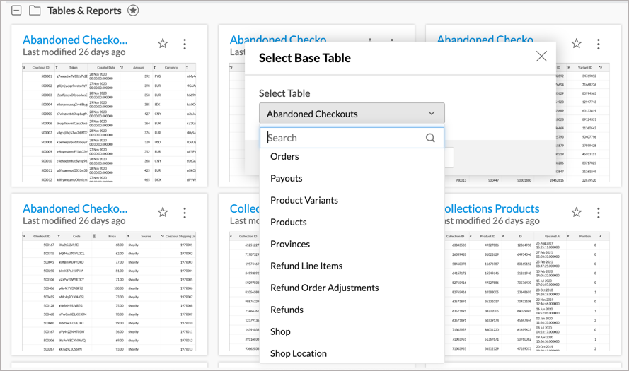 - In the Select Base Table dialog box that opens, select the required table on which you want to create the chart and click OK.