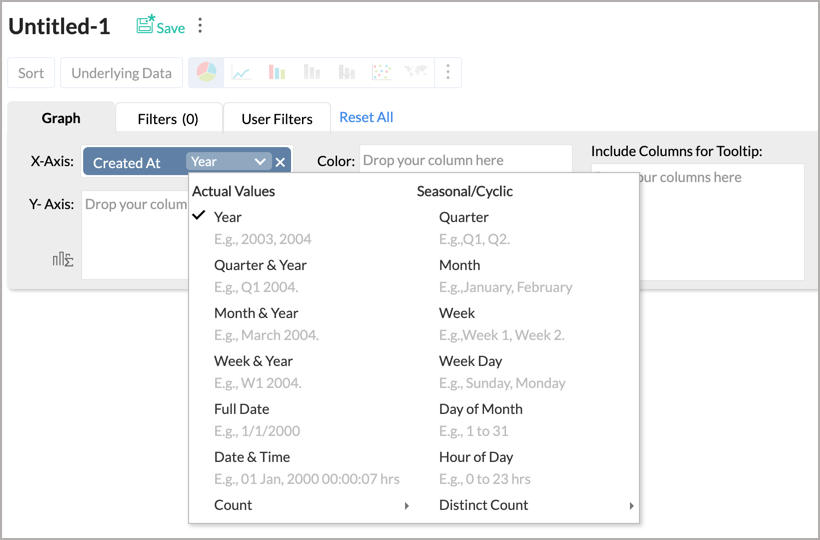 | Full Date | Returns all distinct dates present in the column. E.g., 1/1/2011 |