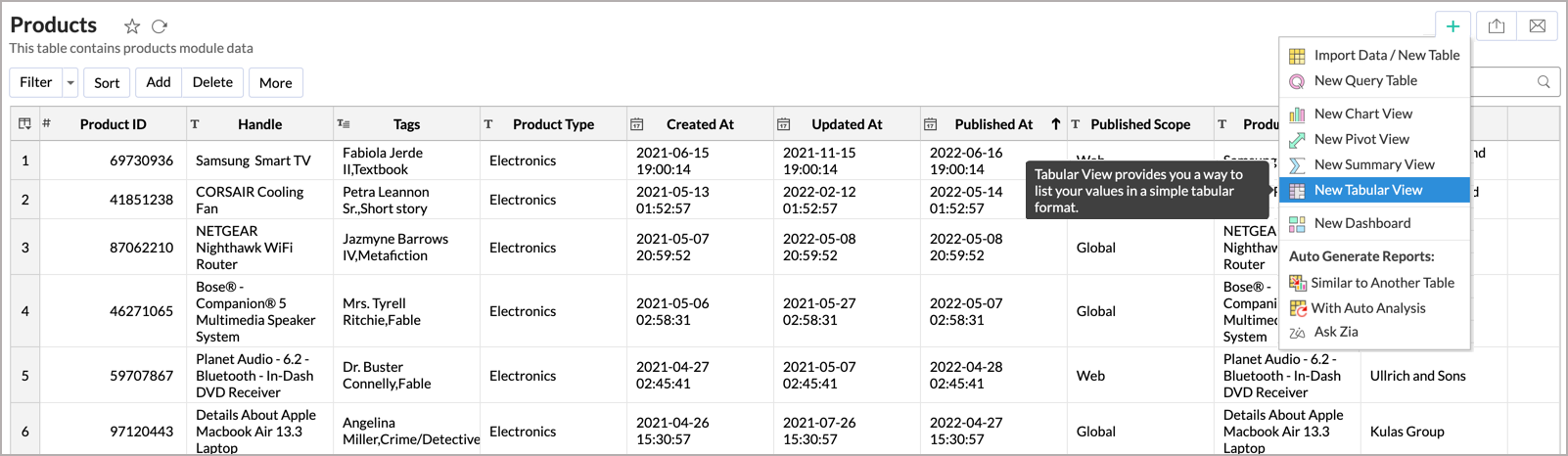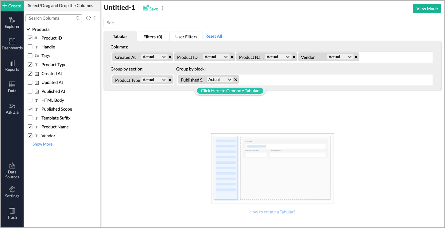 You can create a Tabular View in Zoho Advanced Analytics by following the below steps: