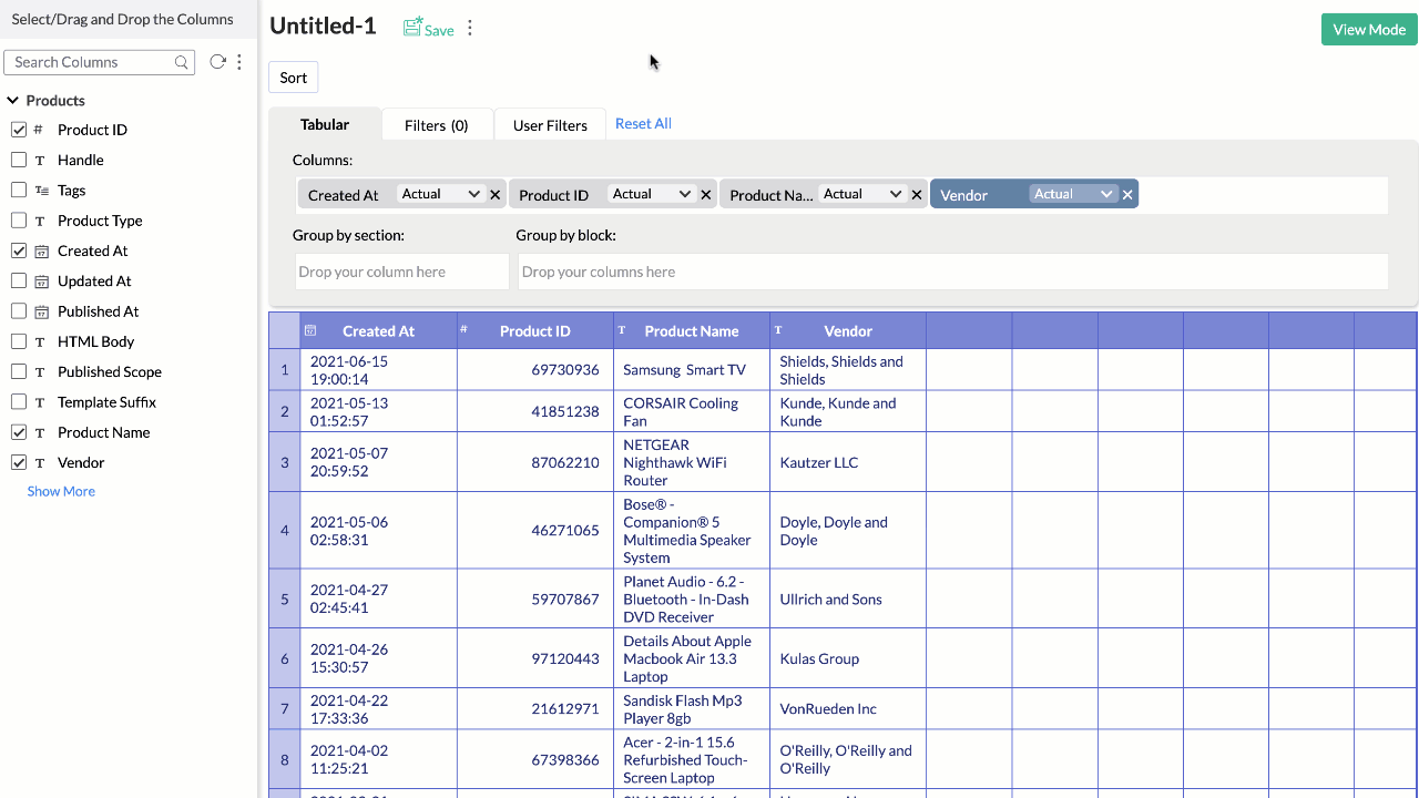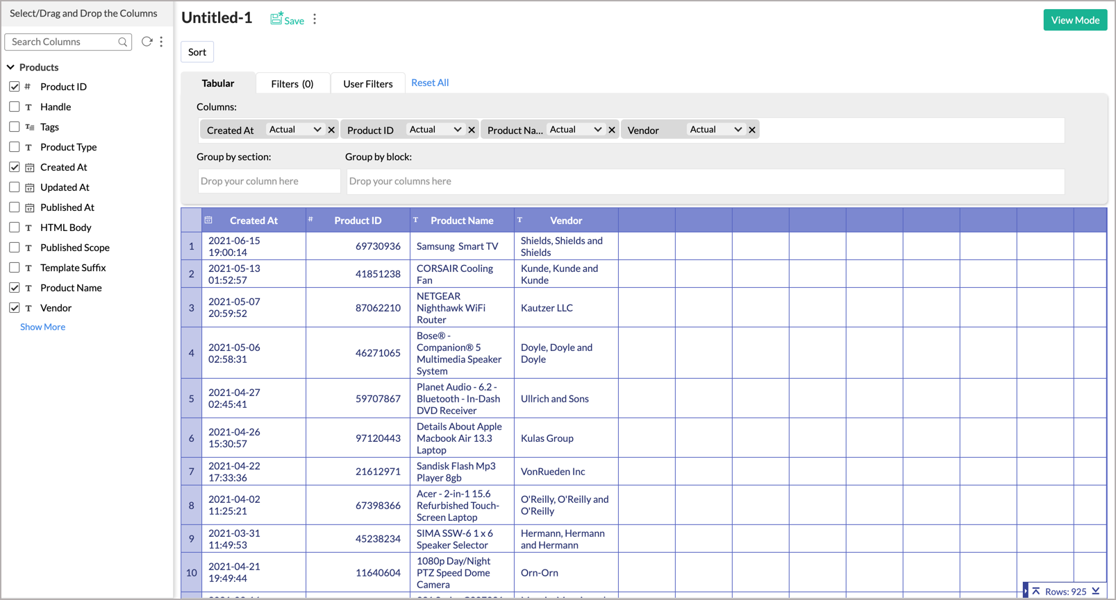 As shown in the below screenshot, data that matches the applied filter will be displayed. You can view the generated Tabular View by navigating to the View Mode.