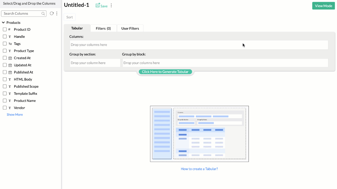 Columns: Data from the columns dropped in this shelf will be added as columns in the Tabular View. You can drop any number of columns in this shelf.