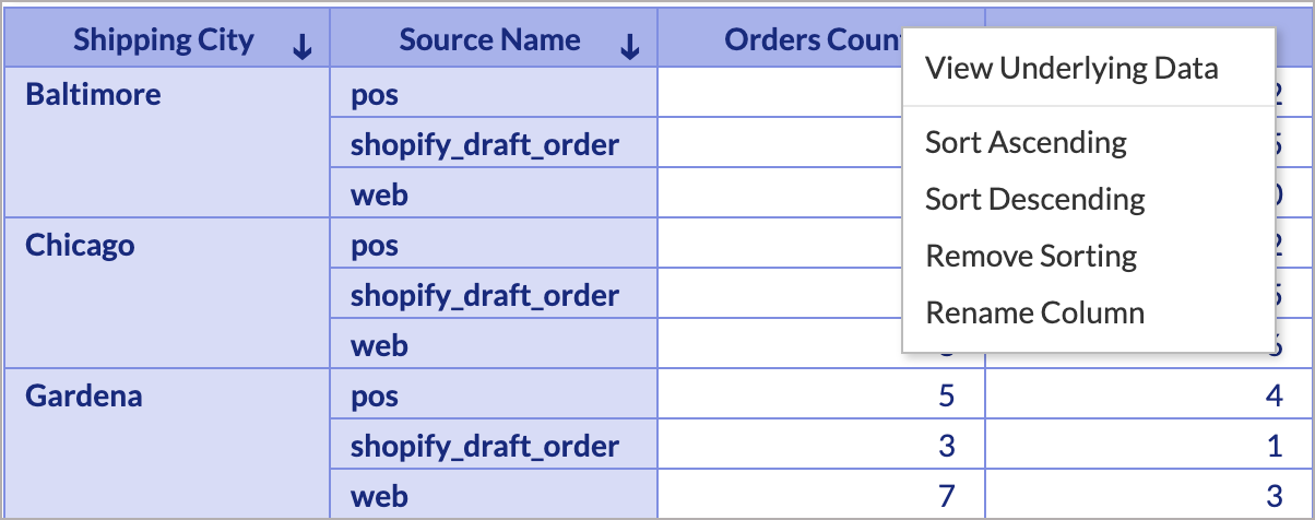 - Right-click the column header and then select Rename Column. Alternatively, you can also rename the column by clicking the Edit icon that appears on mouse over the column name.