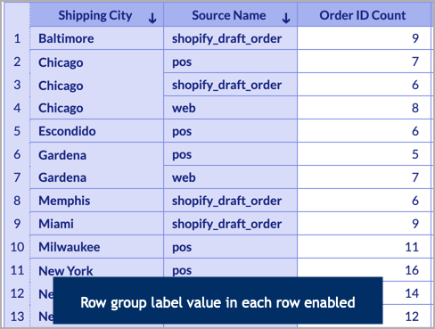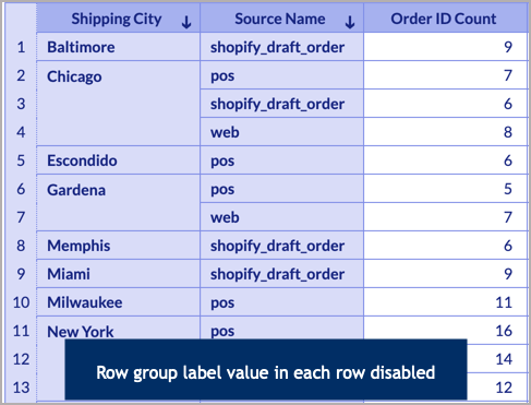 - Repeat group label value in each row: Select this option in case you wish to repeat the group label for each row.