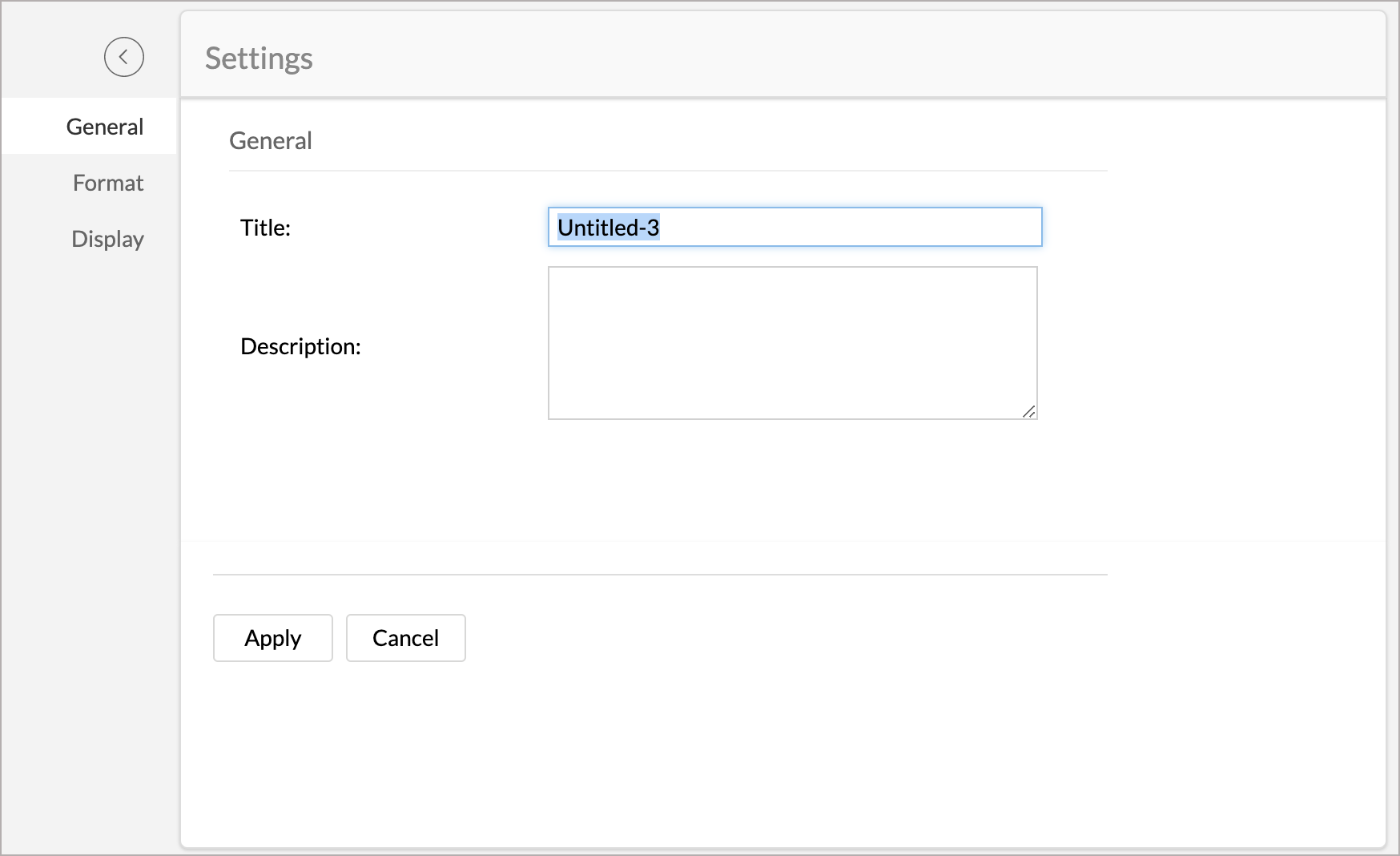 - Select Settings option in the toolbar. This will open the Settings page. You will notice that this page contains three tabs - General, Format, and Display.