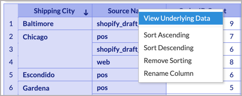 Alternatively, you can also view the overall data by right-clicking the column header and selecting the View Underlying Data option. from the drop-down.