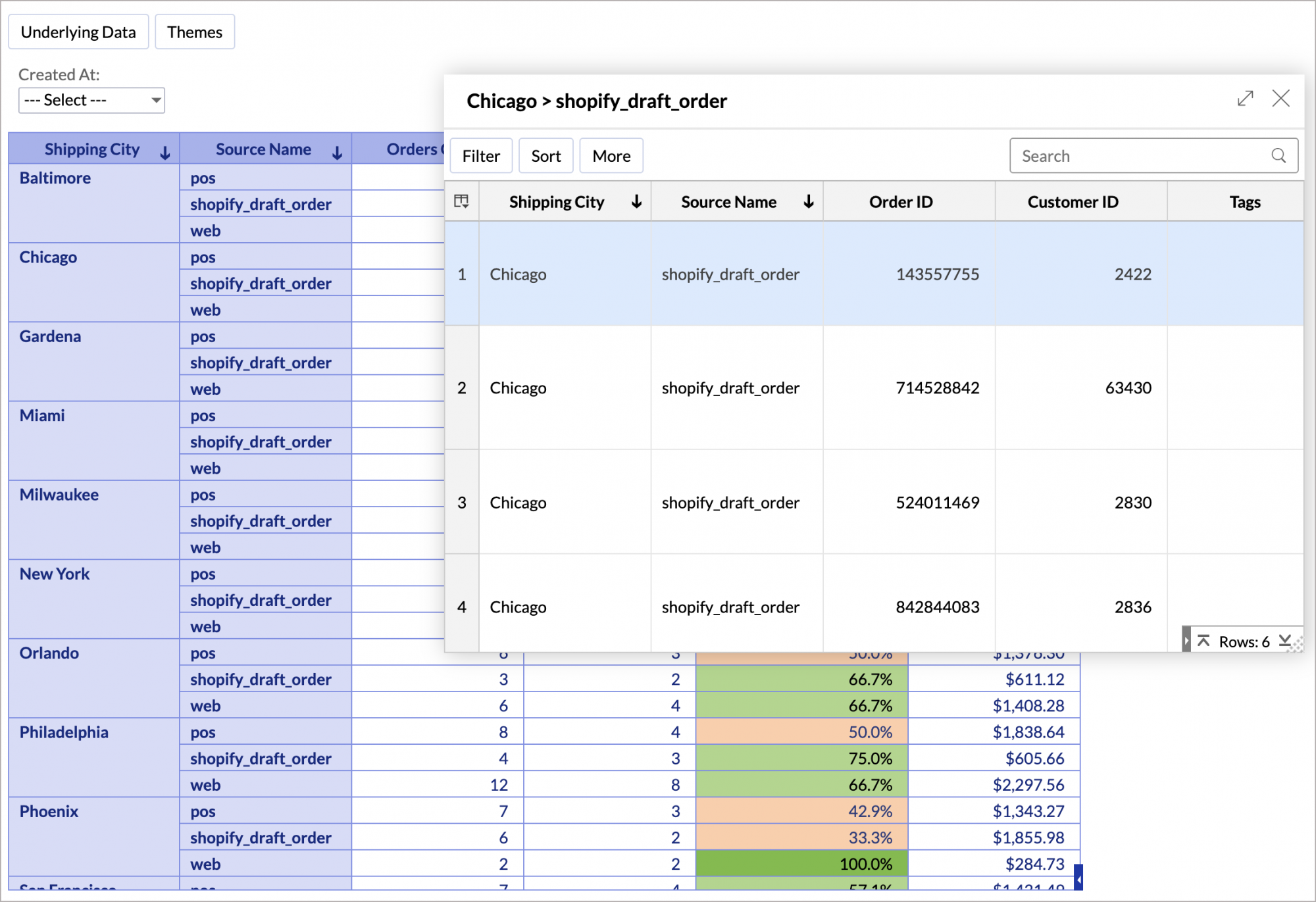 Zoho Advanced Analytics app enables you to view the data that makes up the Summary View. You can click on any cell in the Summary View to view its underlying data in a pop-up table.