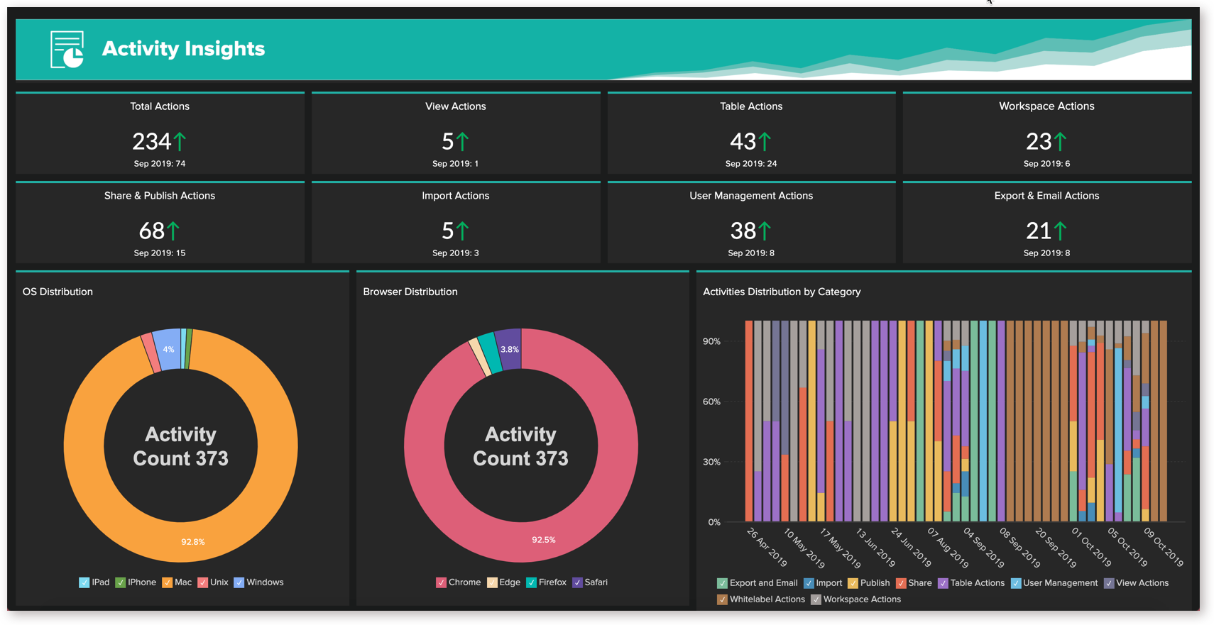 An Activity Insights Dashboard capturing the essentials of user activity such as Daily Activity Trend, Activities Distribution by Category, etc., will also be automatically created.
