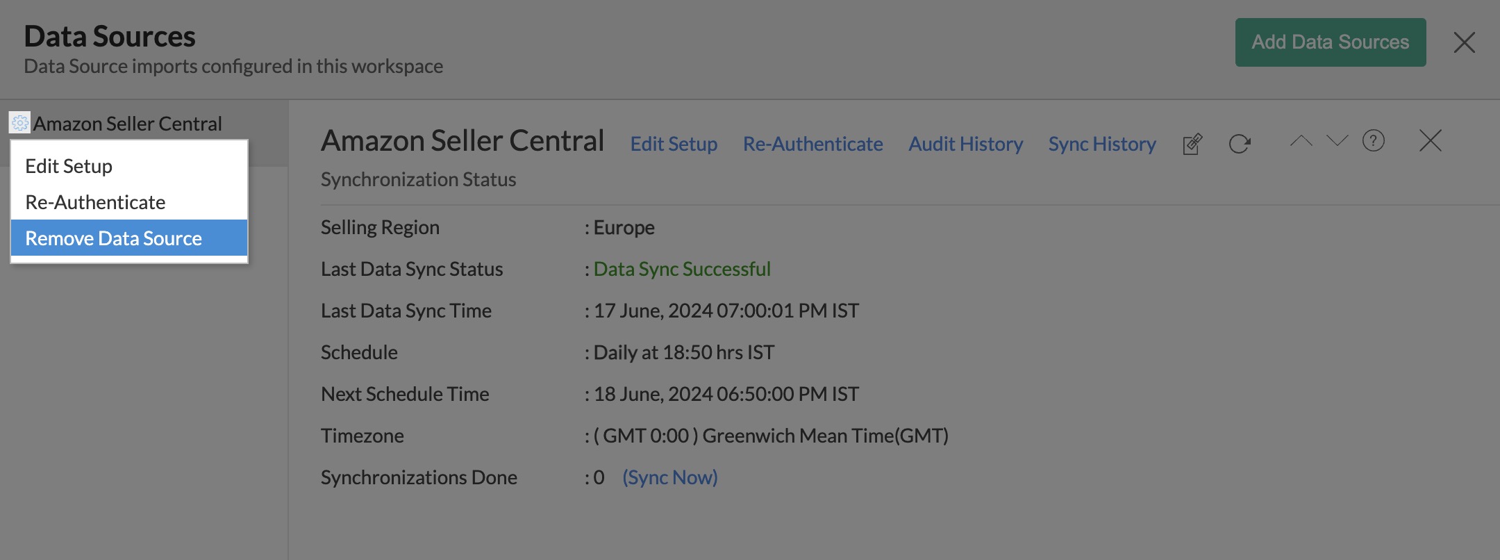 - Click Data Sources > Edit Setup.