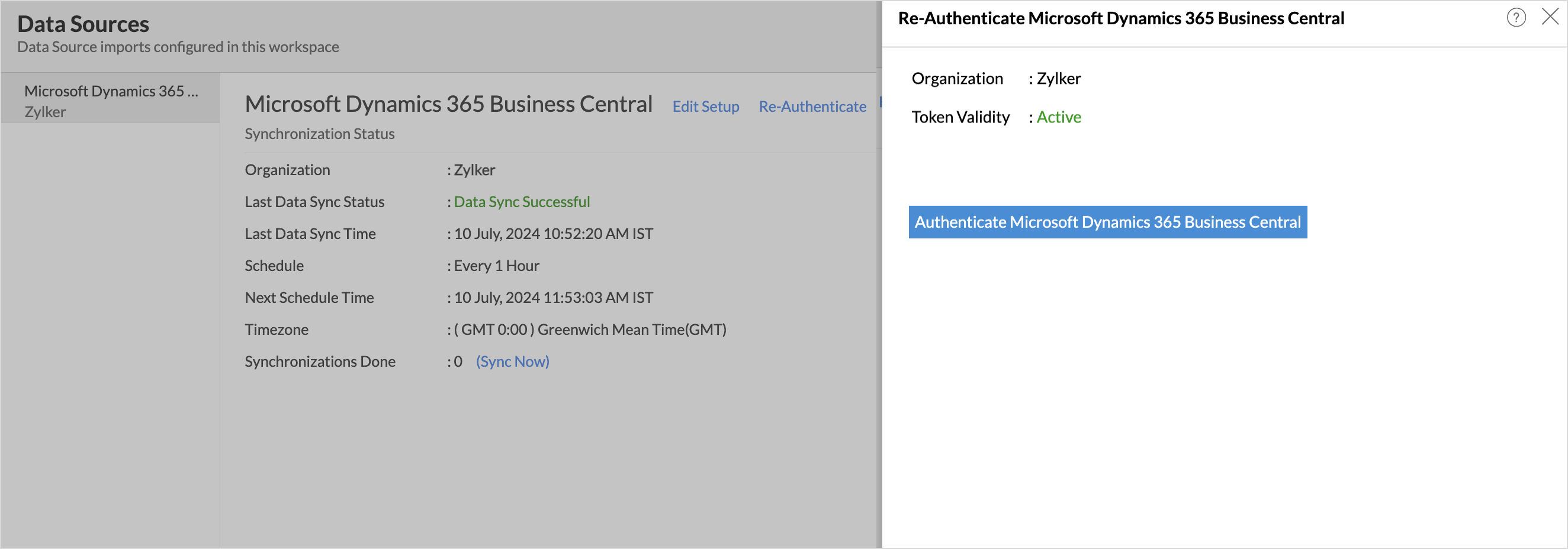 - The Re-authenticate - Microsoft Dynamics Business Central dialog will open. Click Authenticate Microsoft Dynamics Business Central.