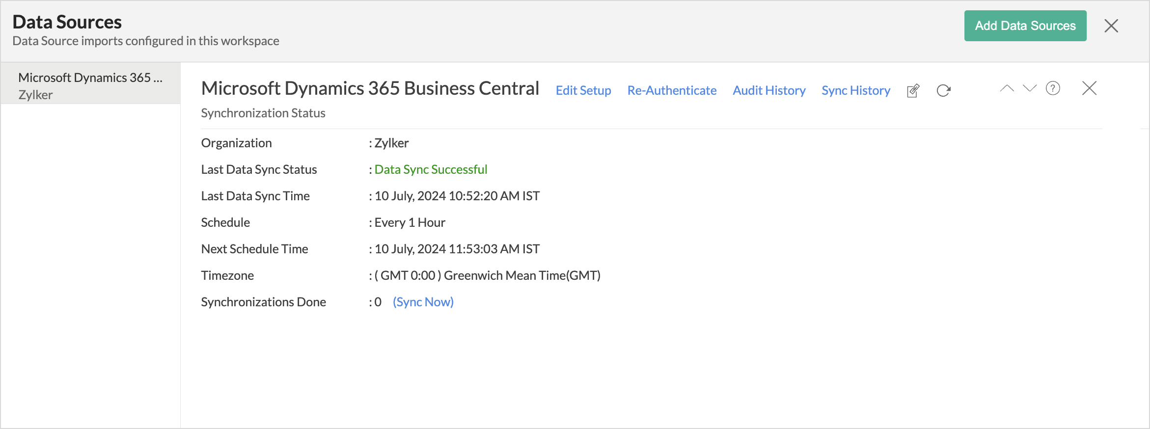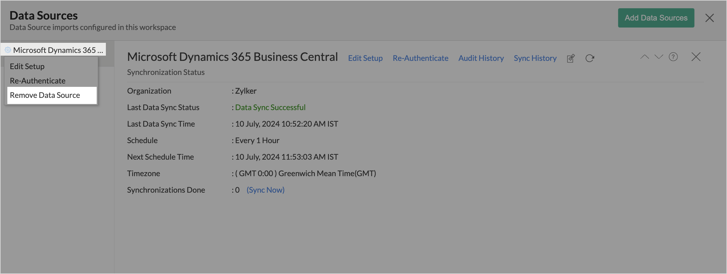 Once you have made the changes, click the Sync now option in the data source tab to resume data sync. If the issue persists, contact support@zohoanalytics.com