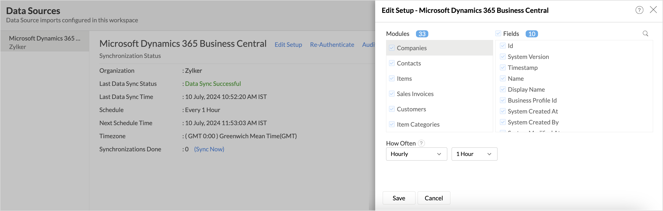- The Edit Setup - Microsoft Dynamics Business Central dialog will open. Modify the settings as needed and click Save.