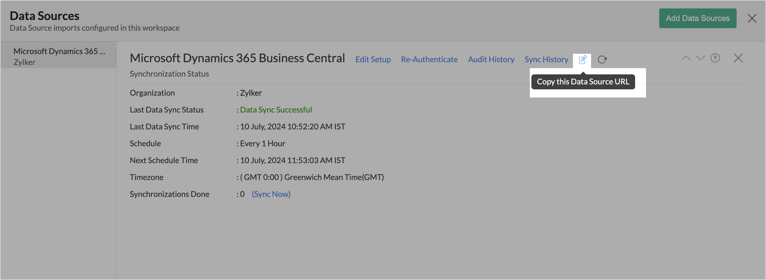 - Click Data sources > Sync History.