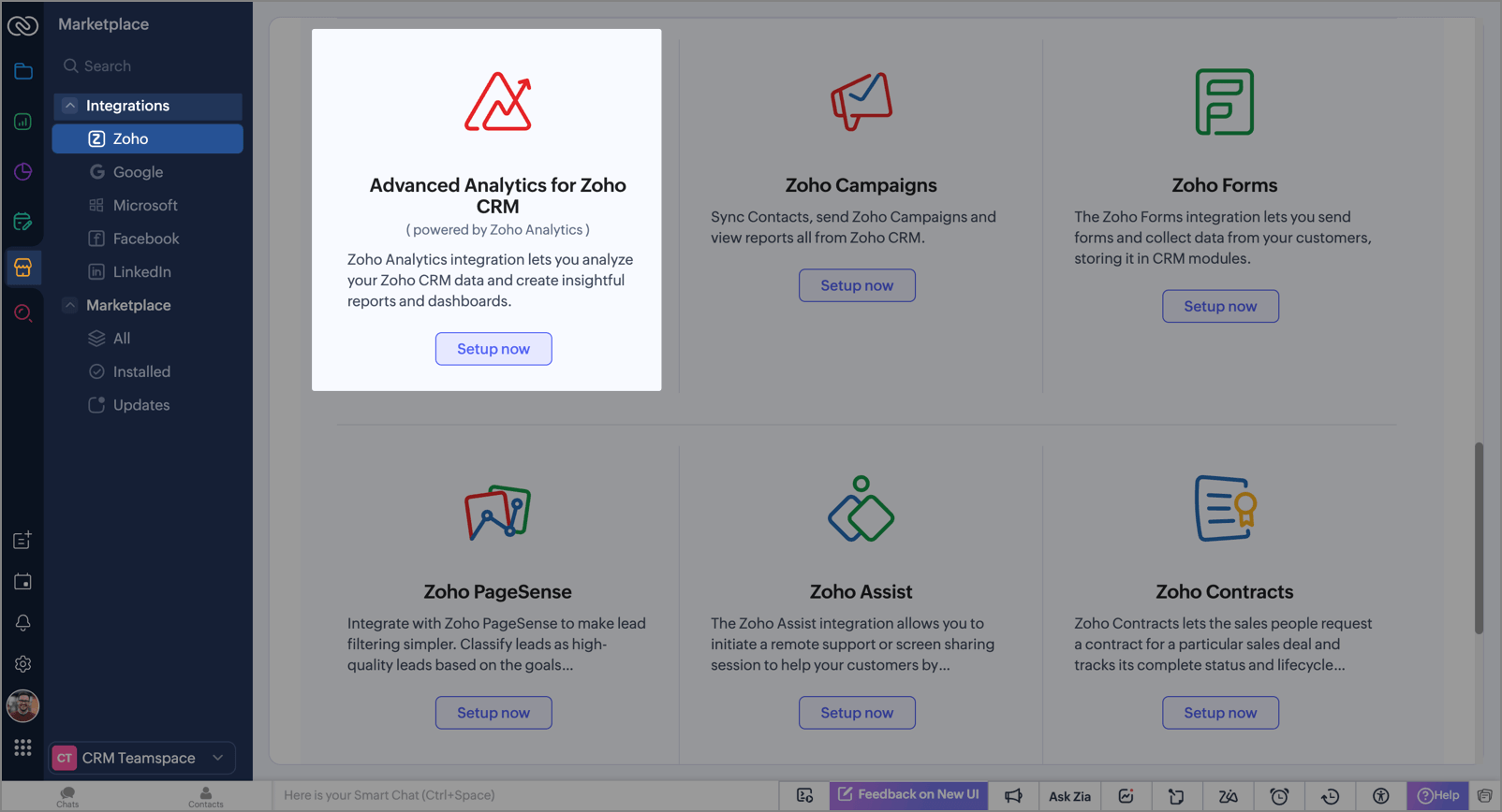 - Navigate to the Zoho Apps tab and select Zoho CRM from the available applications.