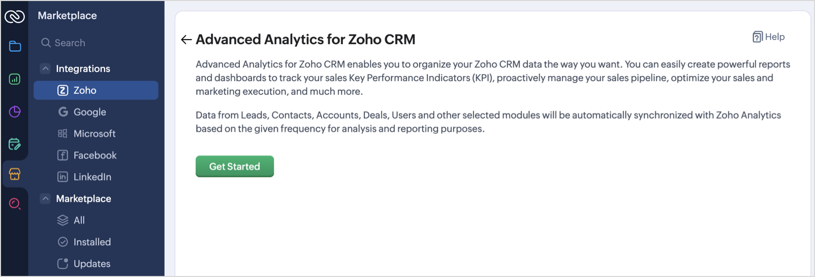 - Click the Get Started button under the Advanced Analytics for CRM section.
