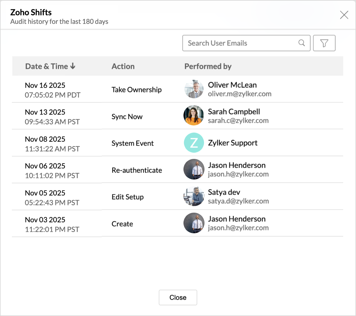 - The Edit Setup - Zoho Shifts dialog will open. Modify the settings as needed and click Save.