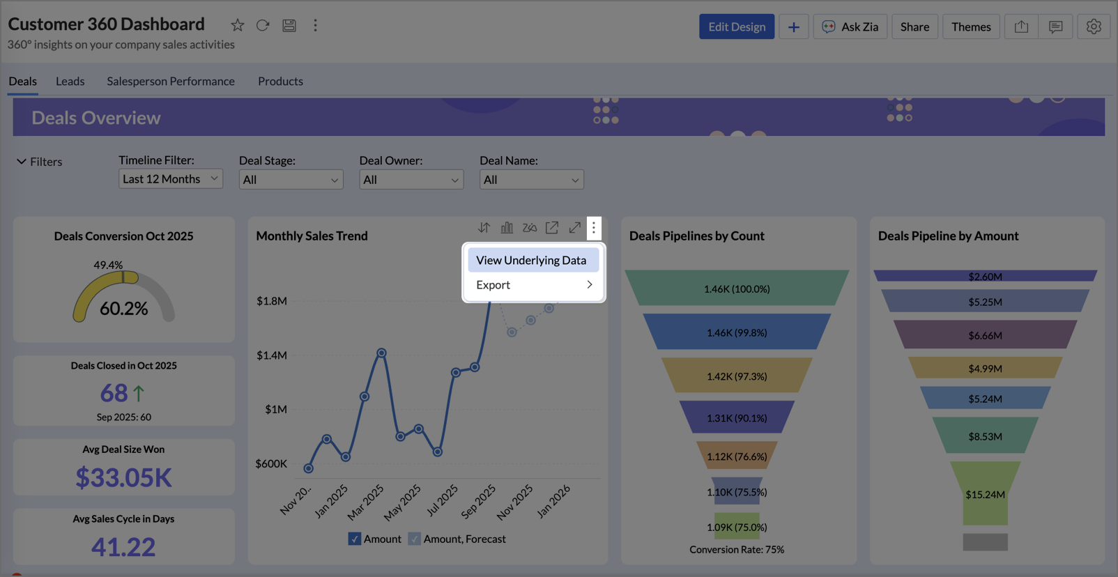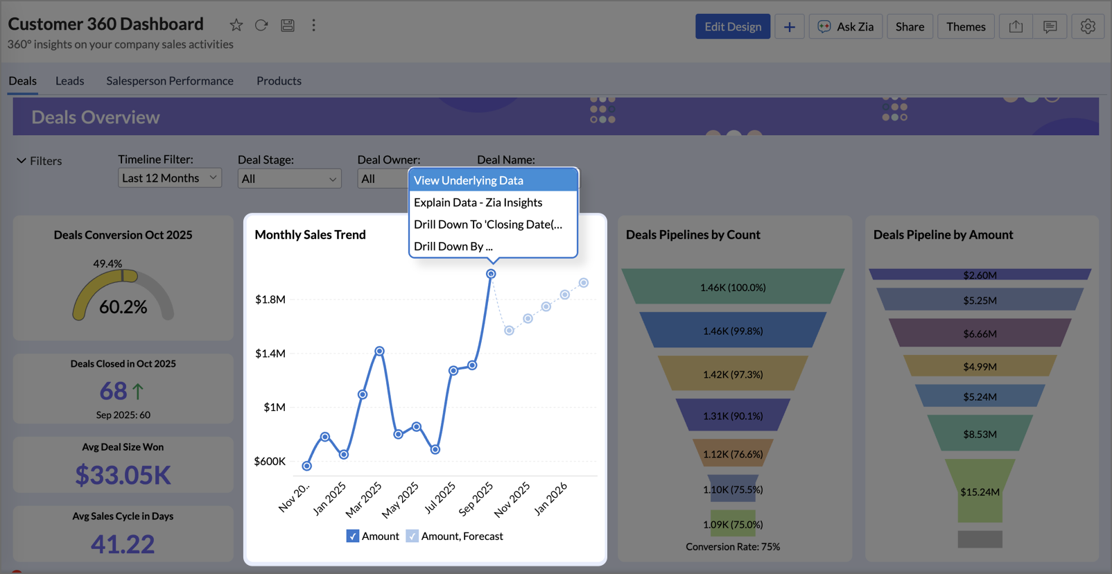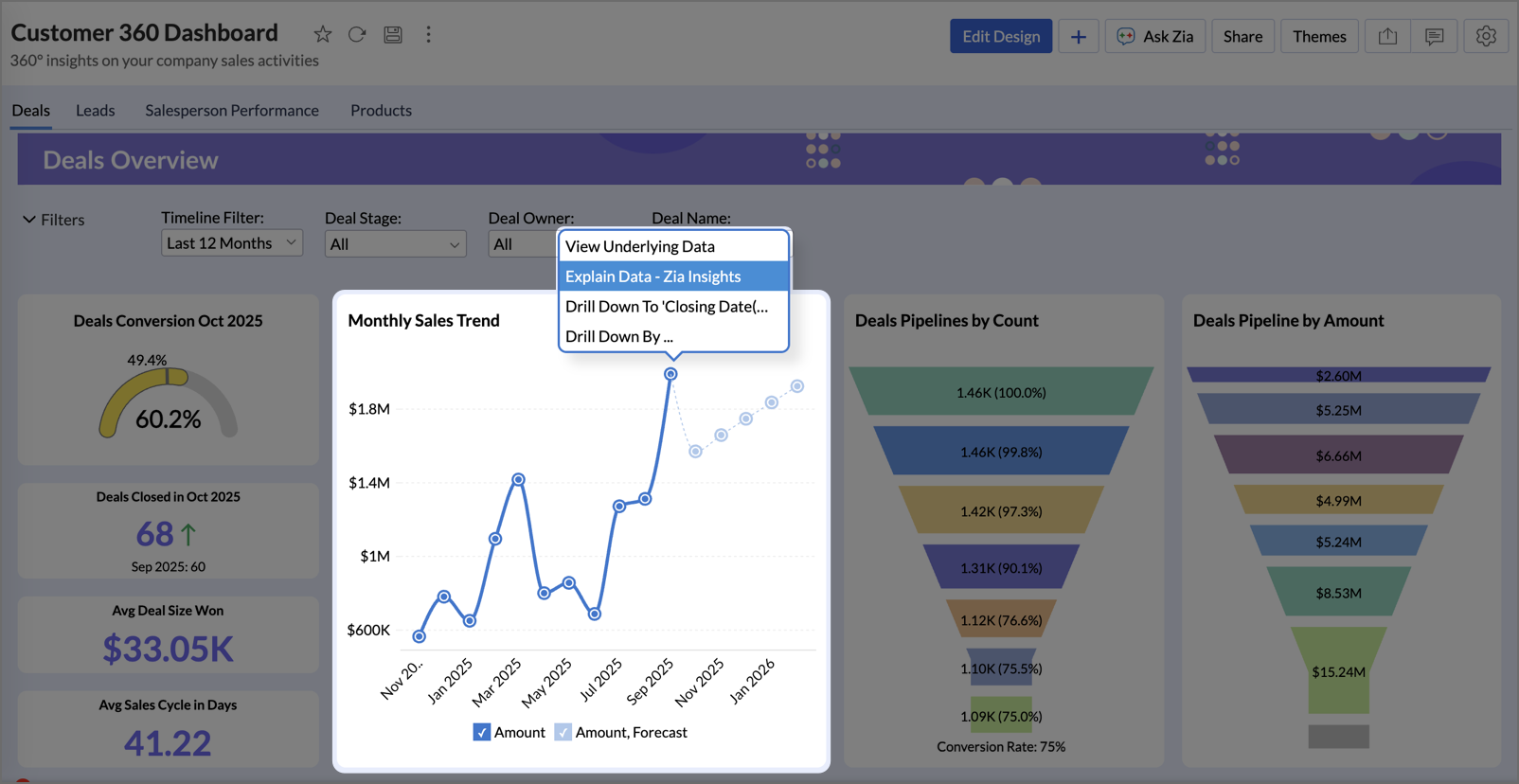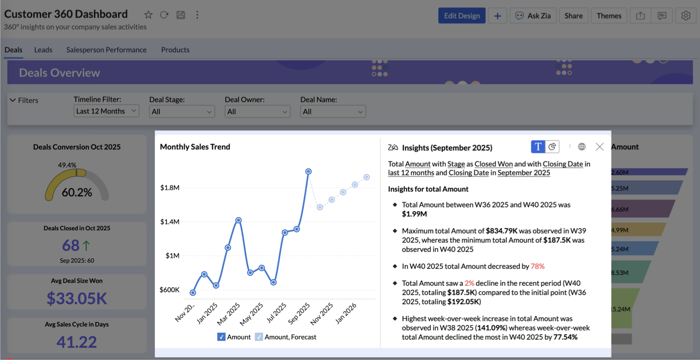 Gain deeper understanding of your data for any specific data point using Zia Insights.