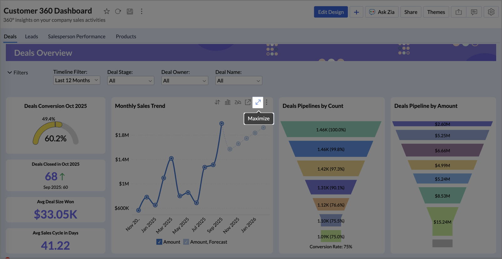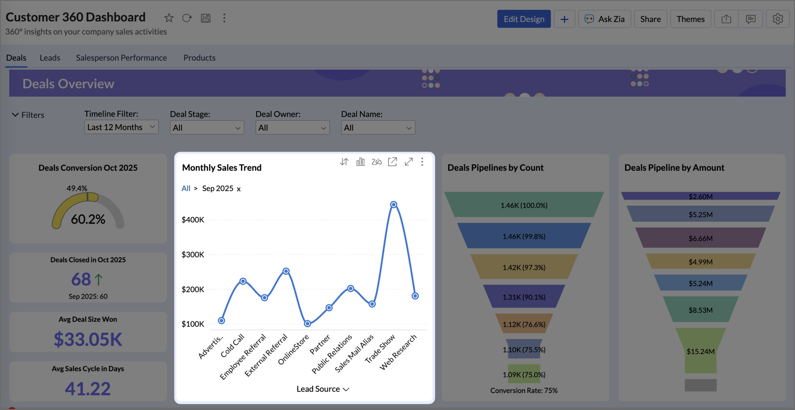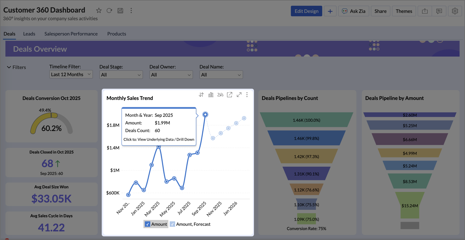 Gain deeper understanding of your data for any specific data point using Zia Insights.