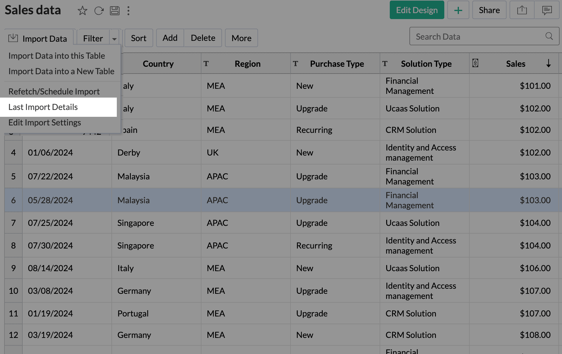 - Any actions, such as adding a new column, creating formulas, formatting columns, and having lookups defined, will be preserved during the import rollback.