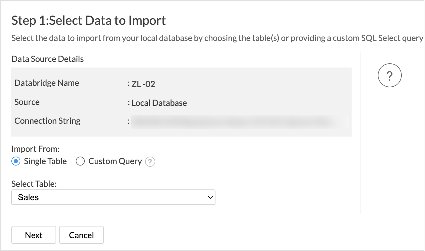 - Incremental fetch: This option imports only the new and updated or modified records into Zoho Analytics. This method is beneficial when the database contains transactional records that get updated frequently. Refer to the Incremental Fetch article to learn more.