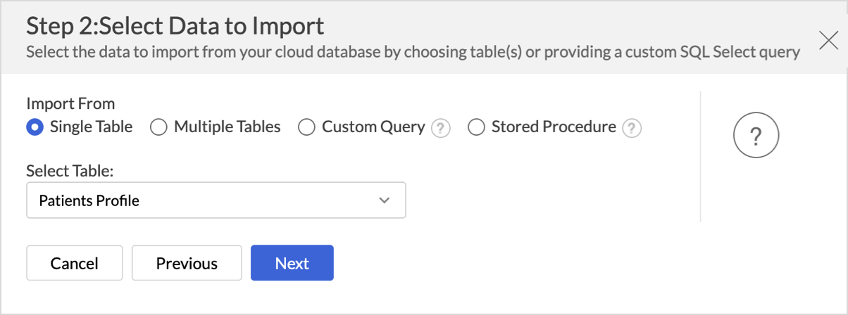 - Choose the table to import from the Select Table drop-down menu.
