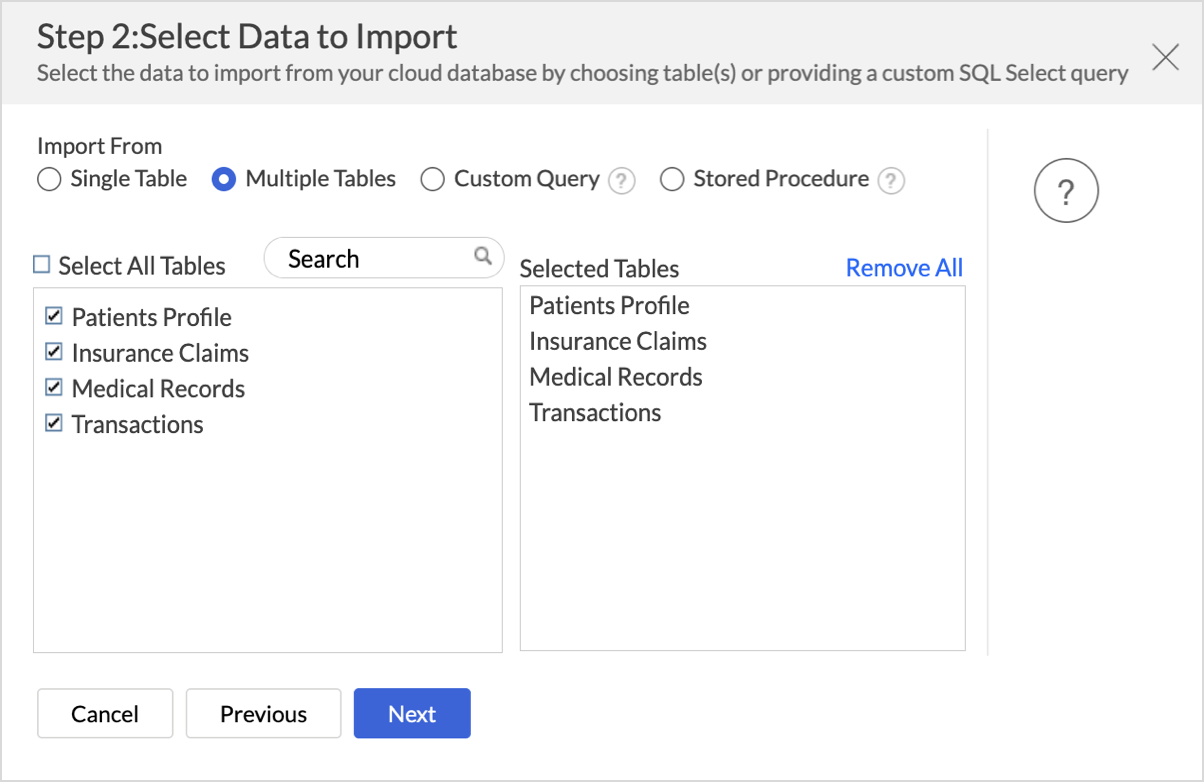 - Select Multiple Tables from the Import From section.