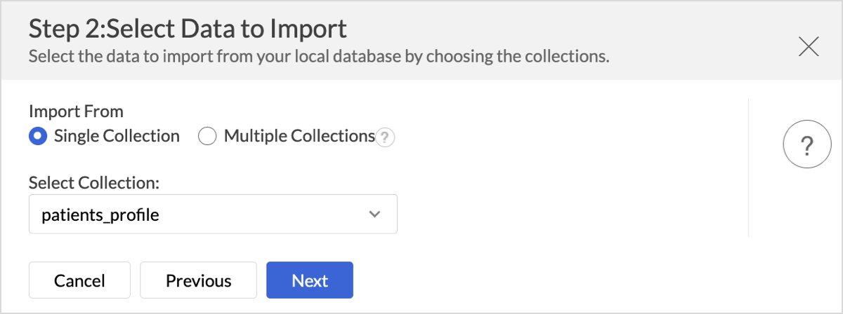 Once the connection details are configured, you need to decide which data you want to import from Cassandra. Zoho Analytics offers import options, such as Single Collection and Multiple Collections to support various data structures and analysis needs.