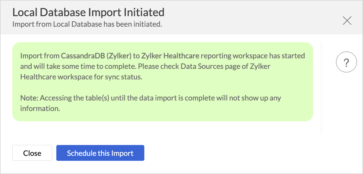 - Click Create. Data import will be initiated, and you can also schedule the import.