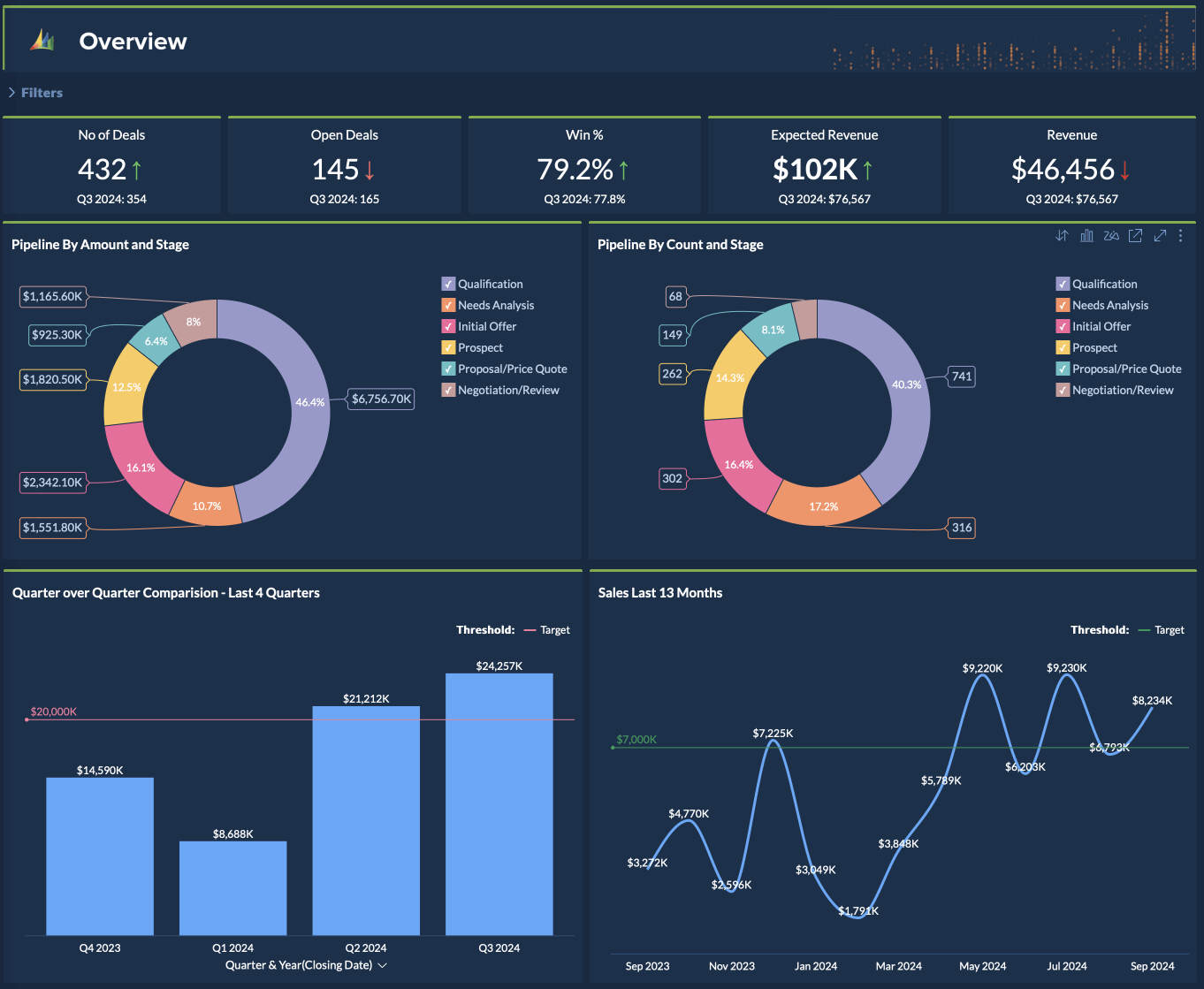Visually analyze your Microsoft Dynamics CRM data. Create insightful reports and dashboards to track your key sales performance indicators (KPIs). Share reports and collaborate with your colleagues, during report creation and analysis.
