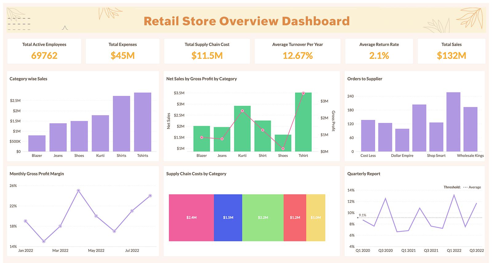Boost your sales by analyzing your past orders trend. Monitor your inventory and never run out of stock by setting alerts. Optimize your supply chain by sharing dashboards with peers.