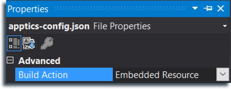 - Right-click on the apptics-config.json file and select Properties.