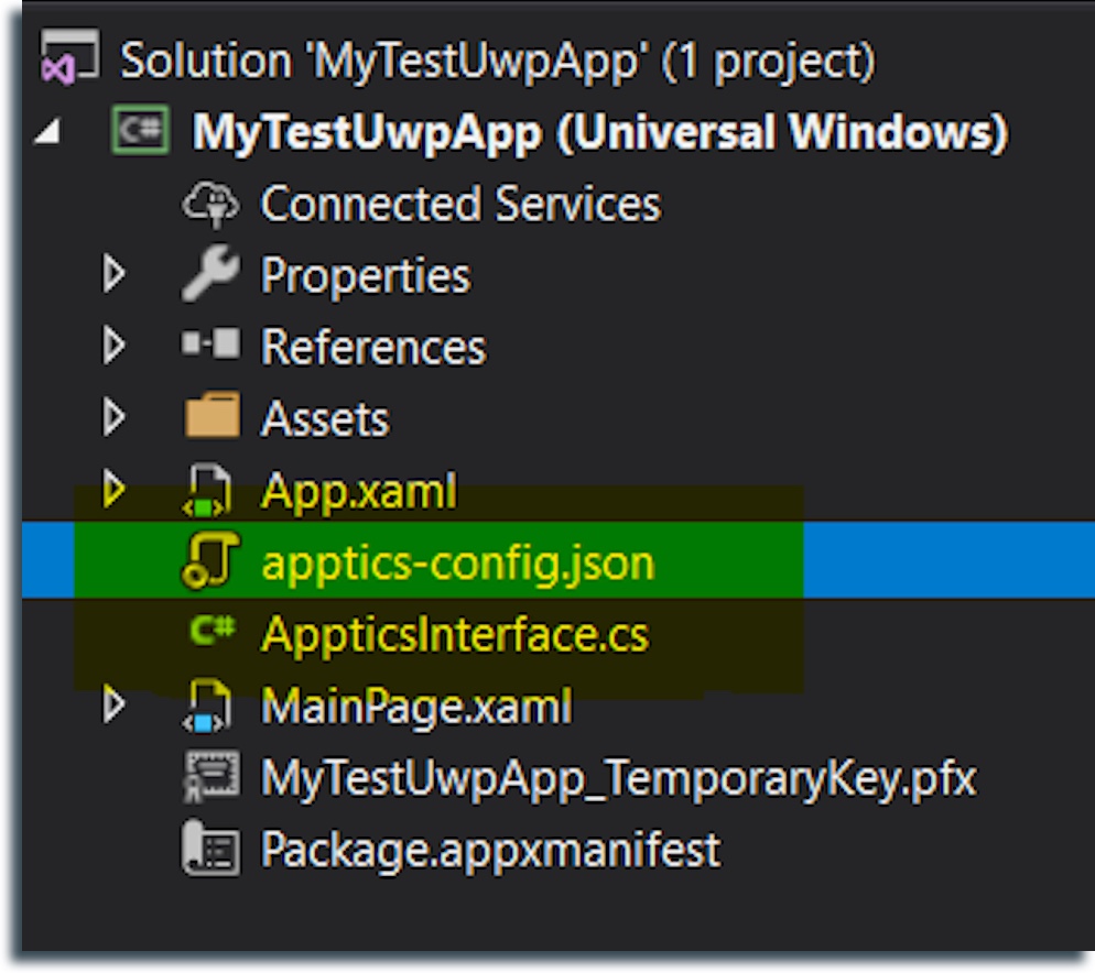 - Add reference to "AppticsUwpBase.dll" , "AppticsWindowsBase.dll",and "AppticsAnalytics.dll" .