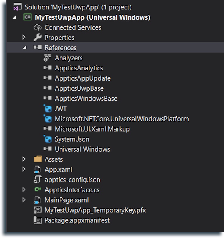 - Add more references like "AppticsAppUpdate.dll", if you want to use the In-AppUpdate feature.