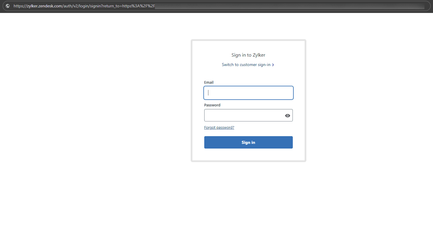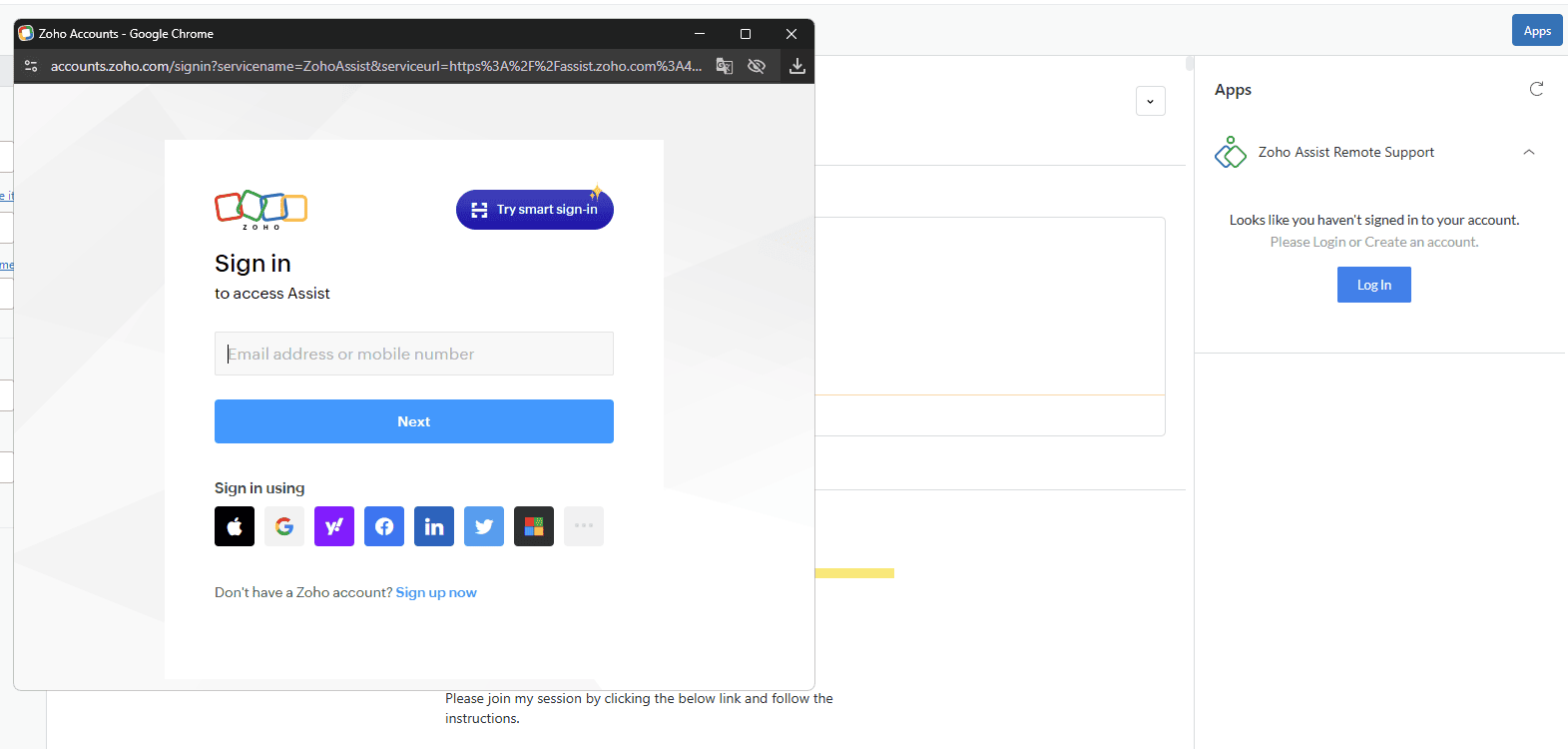 - Go to zoho.com/assist and log in using your Zoho Assist credentials.