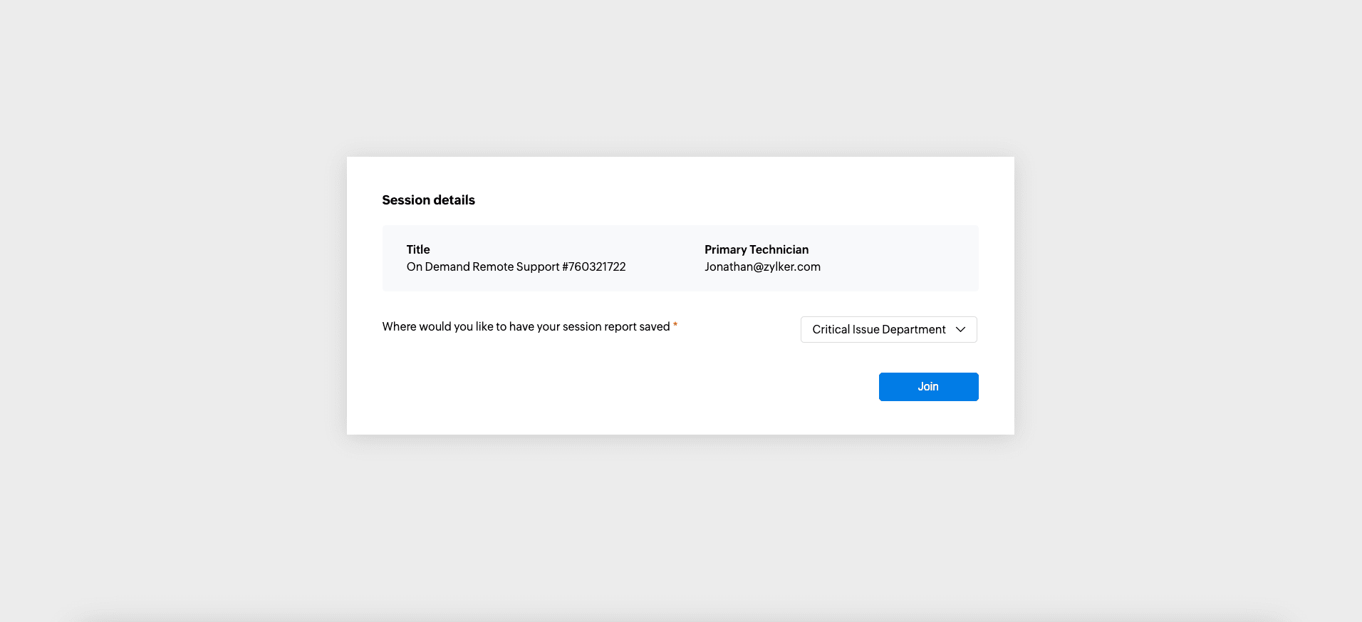 In certain cases where the secondary technician belongs to multiple departments, they will be given the option, upon joining the session link, to choose the department in which they prefer to save the reports for future reference and auditing purposes.