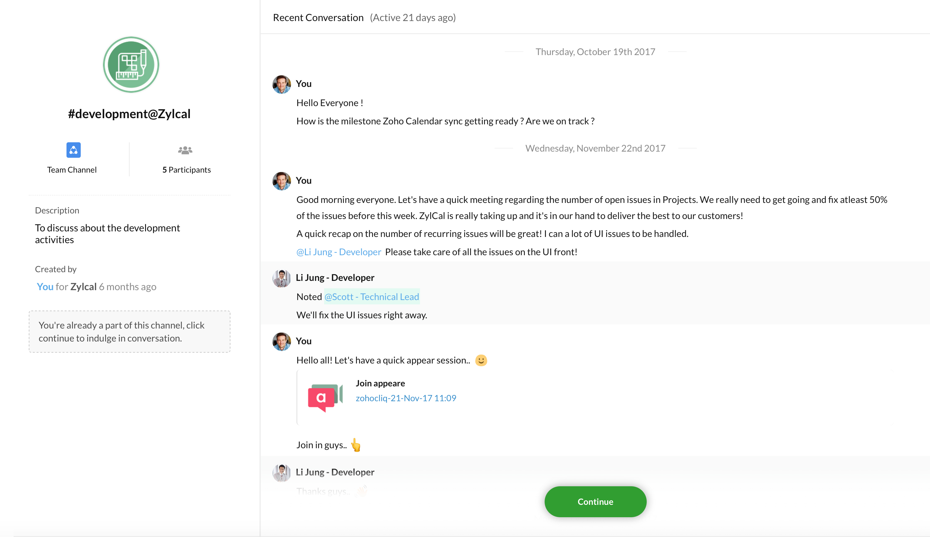 In case of users who are not a part of this channel, Join this Channel button will be displayed instead of Continue.