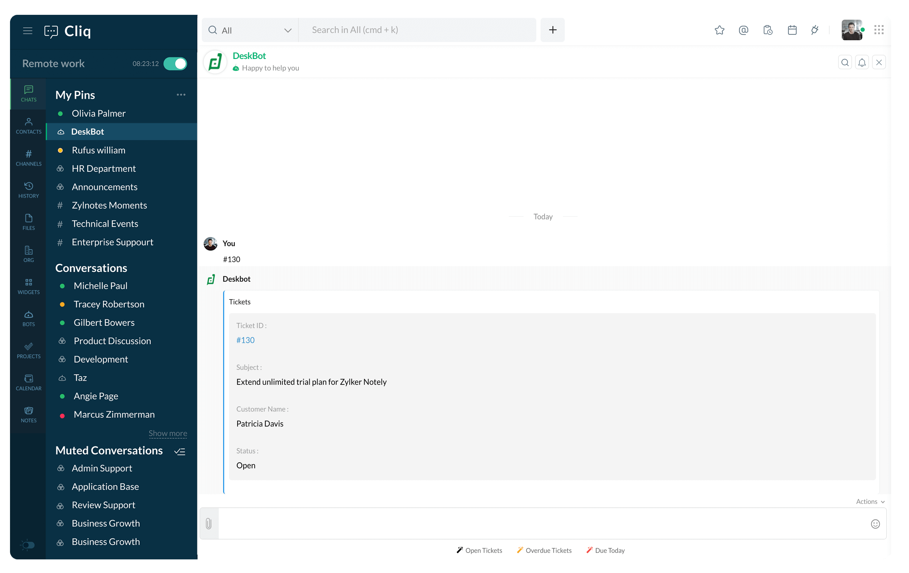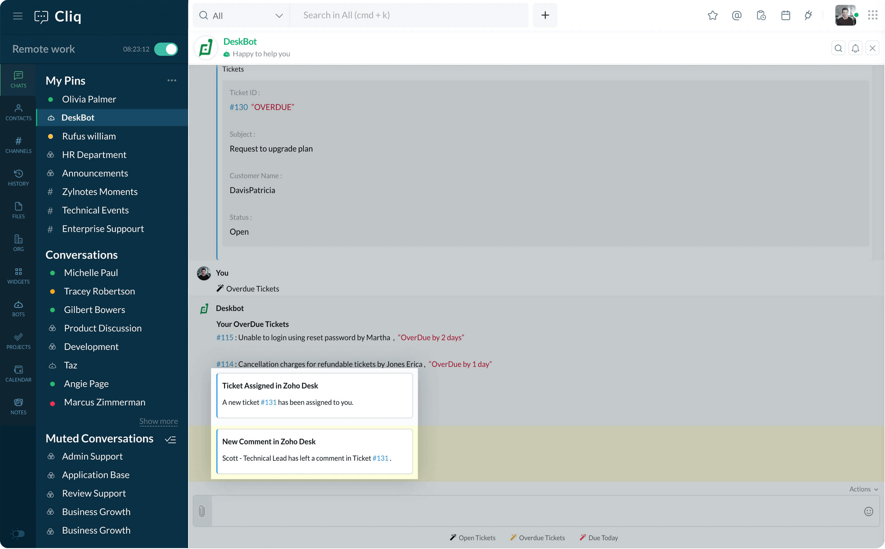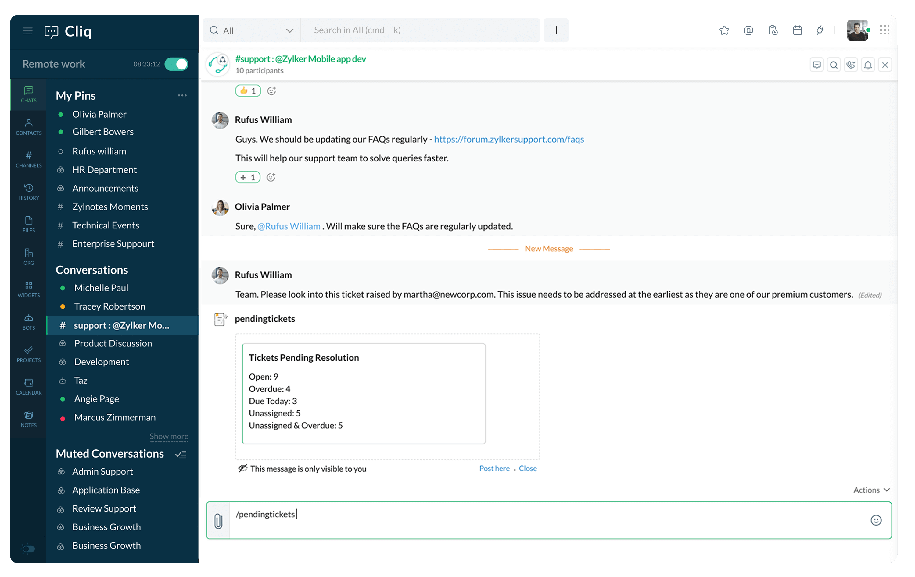 Create a channel in Cliq, so your team can keep track of customer requests, get firsthand information from support agents, and resolve issues faster.