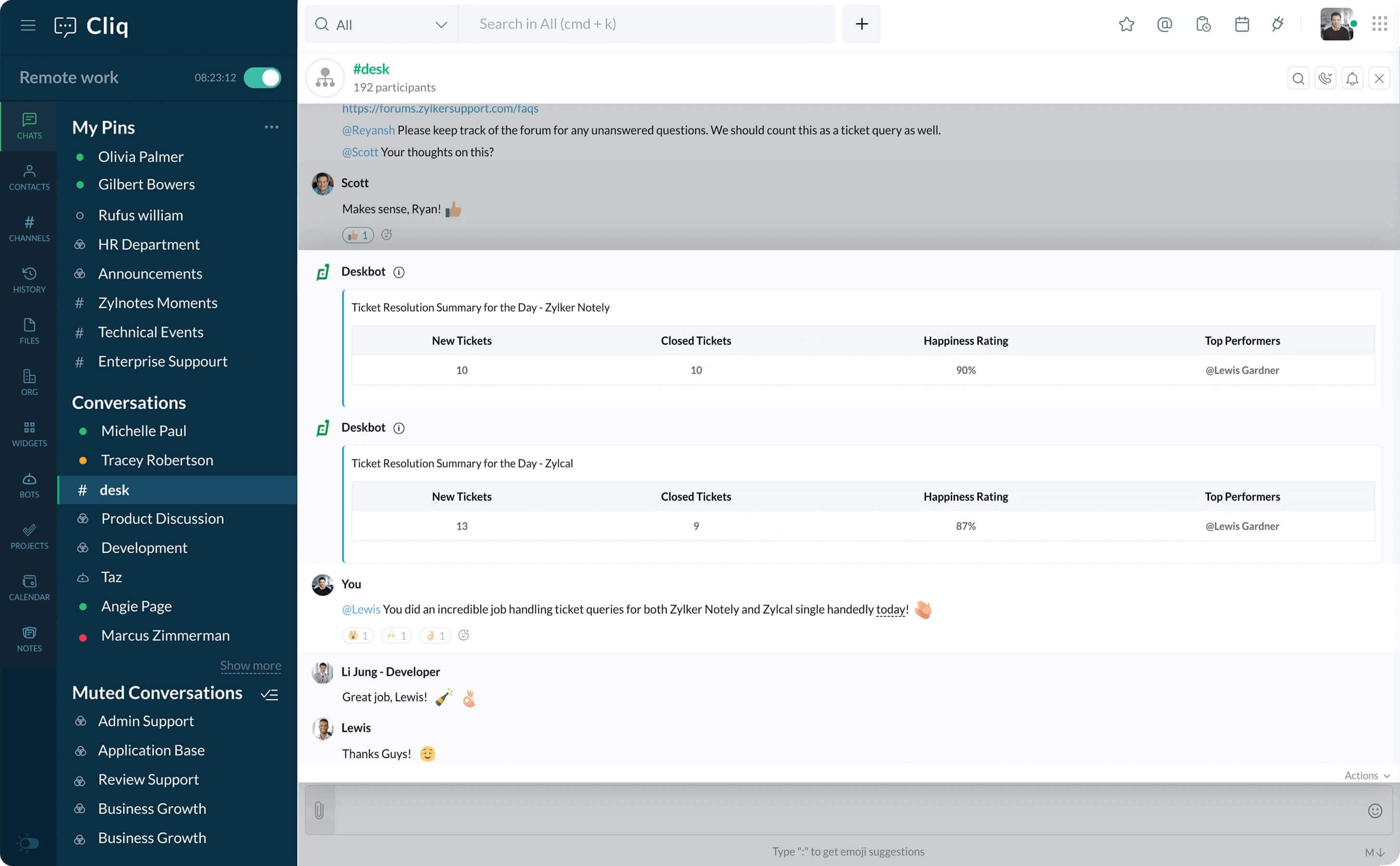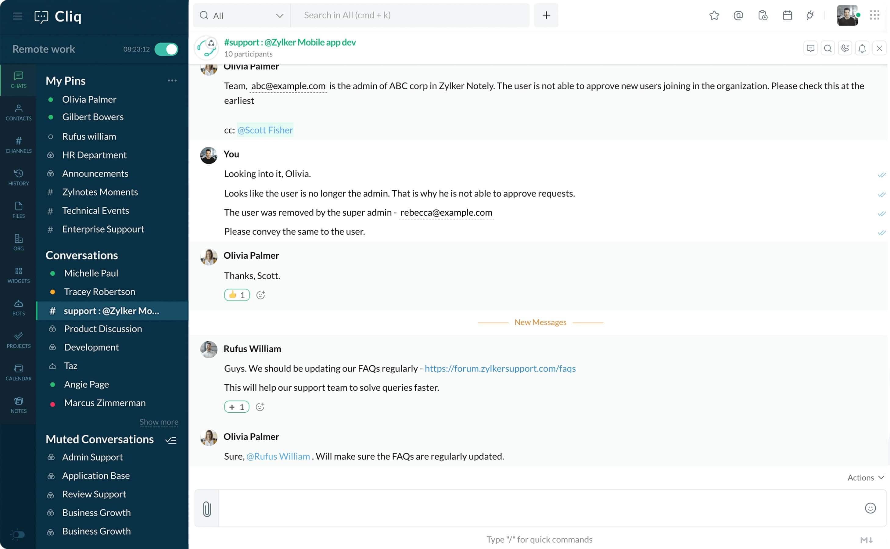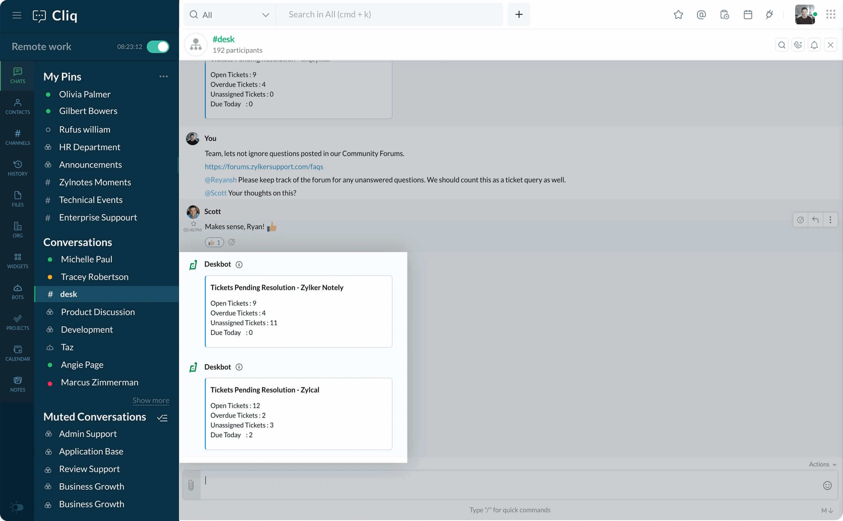 Create a channel in Cliq, so your team can keep track of customer requests, get firsthand information from support agents, and resolve issues faster.
