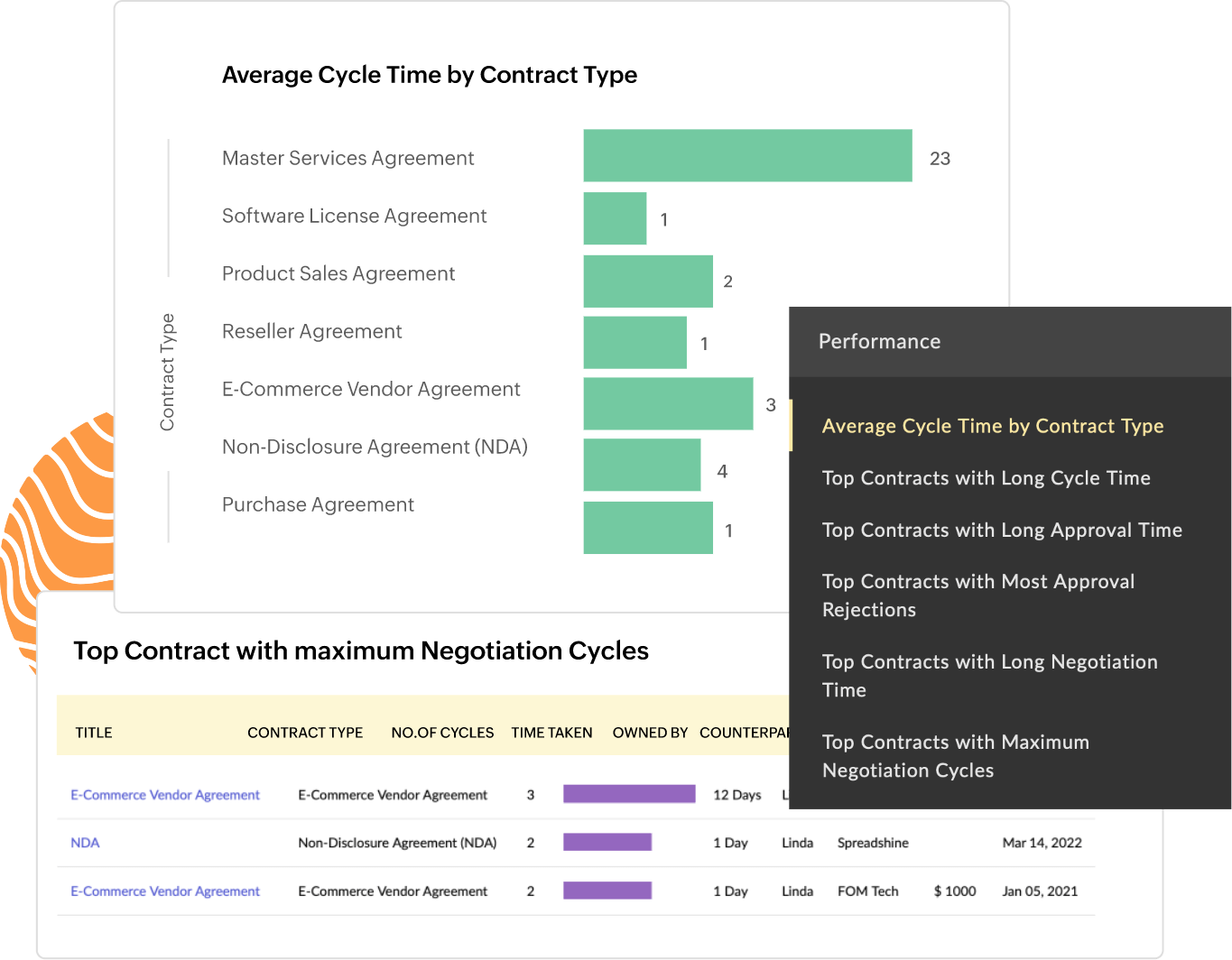 In the fast-paced world of IT, where new regulations and policies arise more frequently, it's crucial to keep your contracts up to date. Our clause-based reports allow you to quickly analyze how many contracts use a particular clause language and make necessary amendments. With more than 35 downloadable and printable reports across different aspects of contract management, Zoho Contracts provides insights that help refine your contracting process.