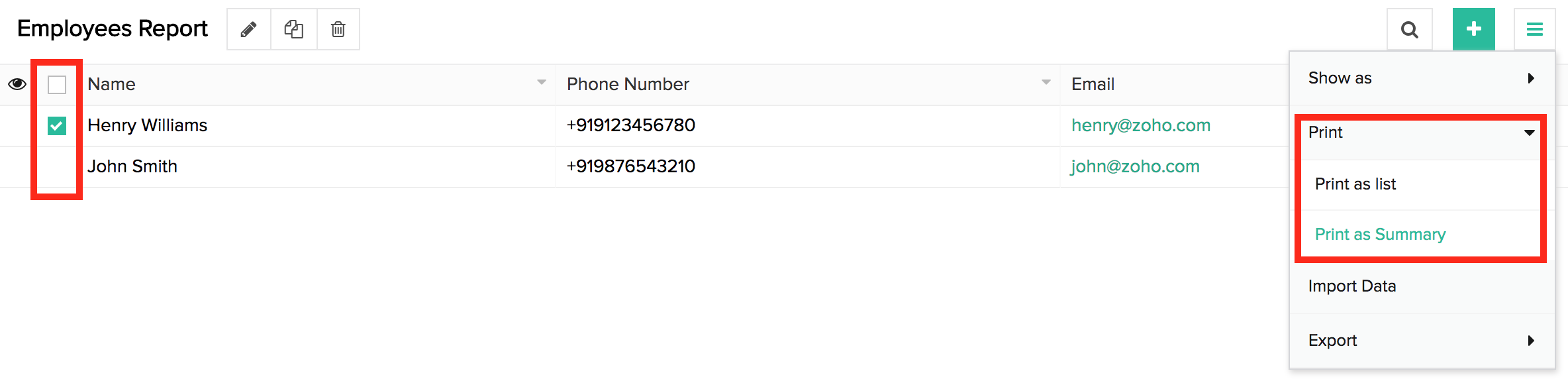 - Click on Print > Print as Summary.