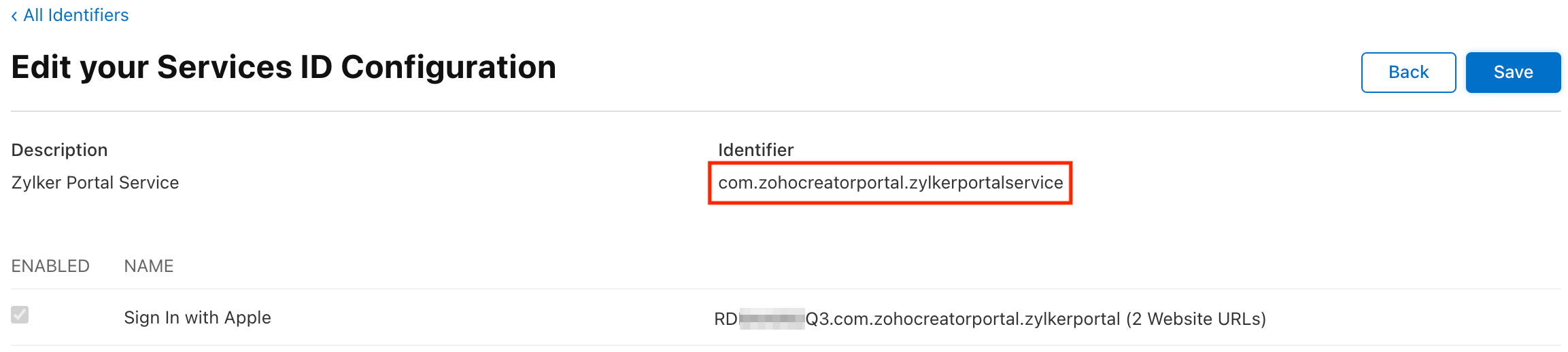 Next, we'll be creating a Services ID . This Services ID will serve as your Client ID within the Federated login configuration pane in Zoho Creator.