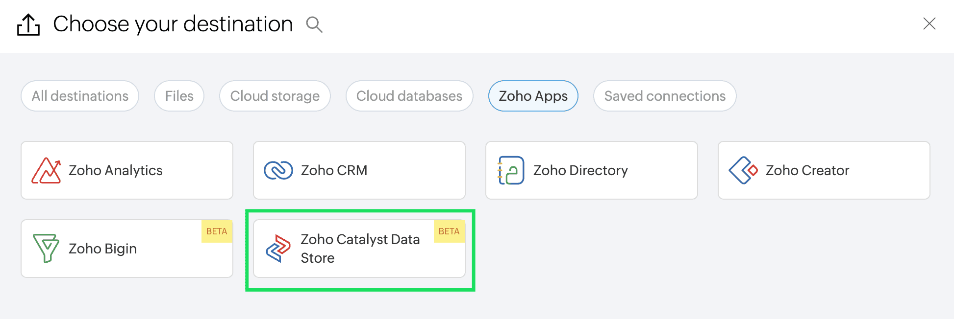 New FeatureExport your prepared data directly to Zoho Catalyst Data Store to power your applications with reliable, high-quality data. Gain the flexibility to seamlessly move your processed datasets into Catalyst Projects in Development and Production environments for safe development & testing, and live operations.