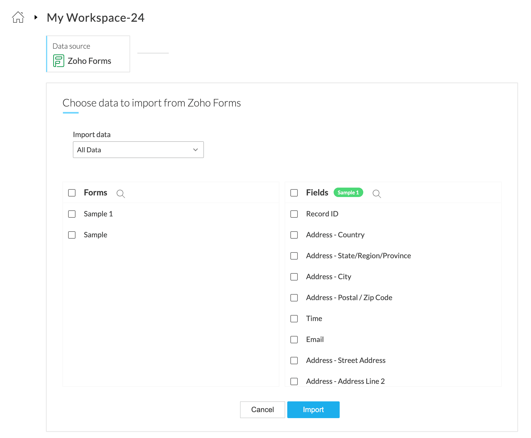 Zoho DataPrep is now integrated with Zoho Forms. Using Zoho Forms, you can easily build an online form facilitating data collection for all your business needs. With Forms connector you can clean, sync, enrich and backup your Forms data seamlessly using DataPrep. Learn more