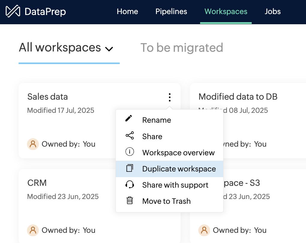 Zoho DataPrep now lets you duplicate your workspaces and pipelines. With this, you can effortlessly create copies of your data flows and perform comparisons, A/B testing, production/staging movement of your data workflows seamlessly. Learn more