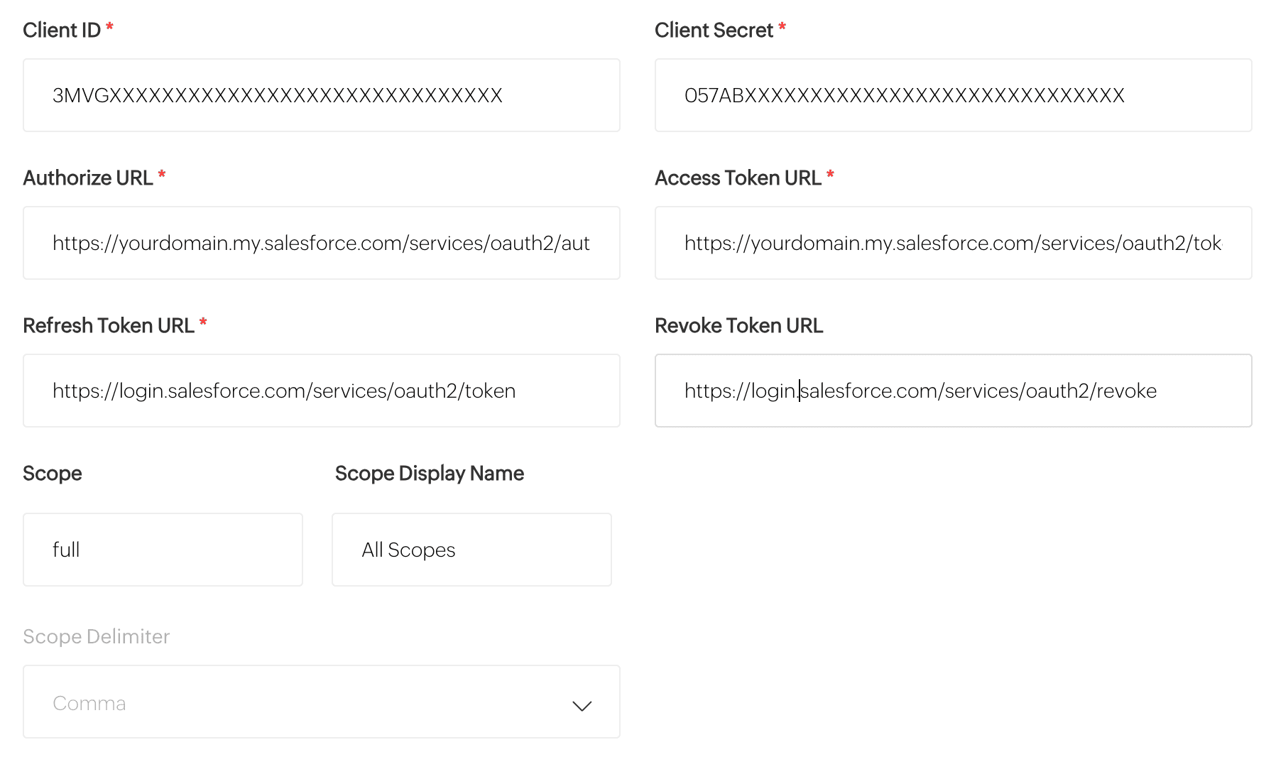 - Revoke Token URL: URL to remove the refresh token as specified in the API documentation of the desired service