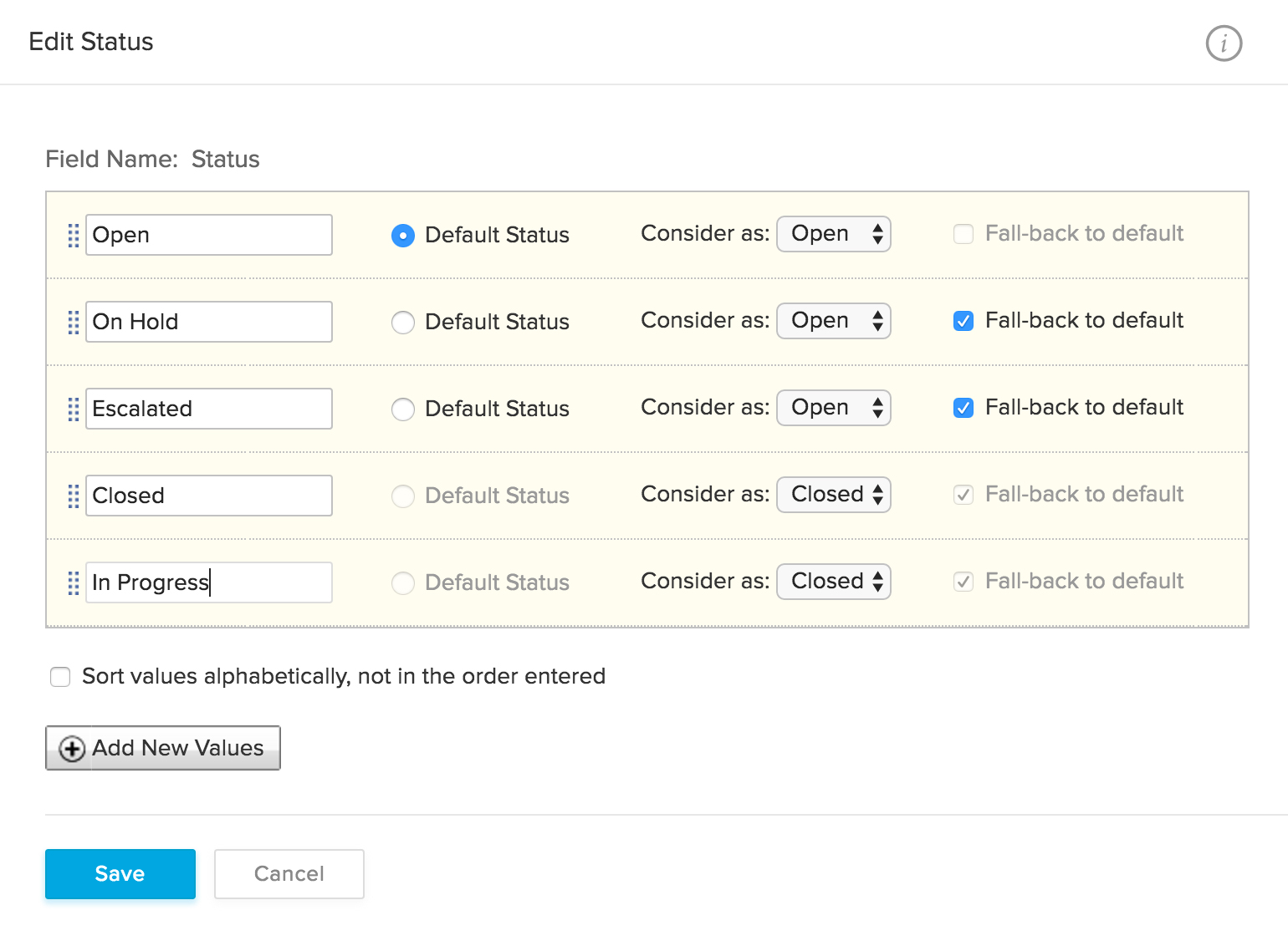 A ticket status helps you track how many tickets your team has received, how many are in progress, and how many have been resolved. Zoho Desk's default statuses are 'Open', 'On hold', 'Escalated', and 'Closed'. You can also create custom ticket statuses that better suit your workflow.