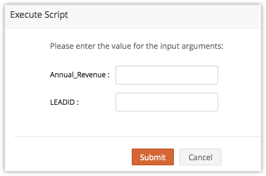 - In the Execute Script pop-up, enter the values and click Submit to test if the custom function is working properly.