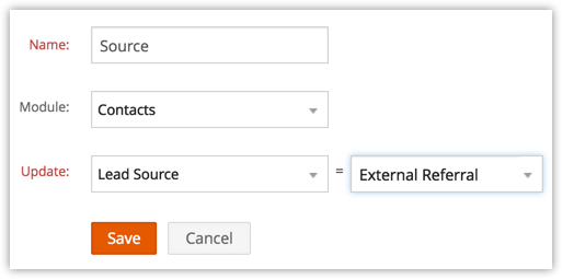 You can also update the field values of the related parent records associated to the record selected for workflow rule. For example: While creating workflow rules for Contacts, you will be able to update the fields of the parent Account records too.