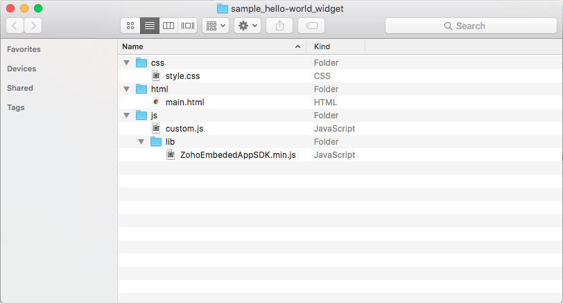 - All the files that are required for rendering your widget needs to be placed inside the "app" folder of your helloworld project.