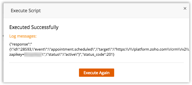 response = zoho.crm.invokeConnector("acuityschedulingext.acuityscheduler.regsiterwebhook", scheduledMap);