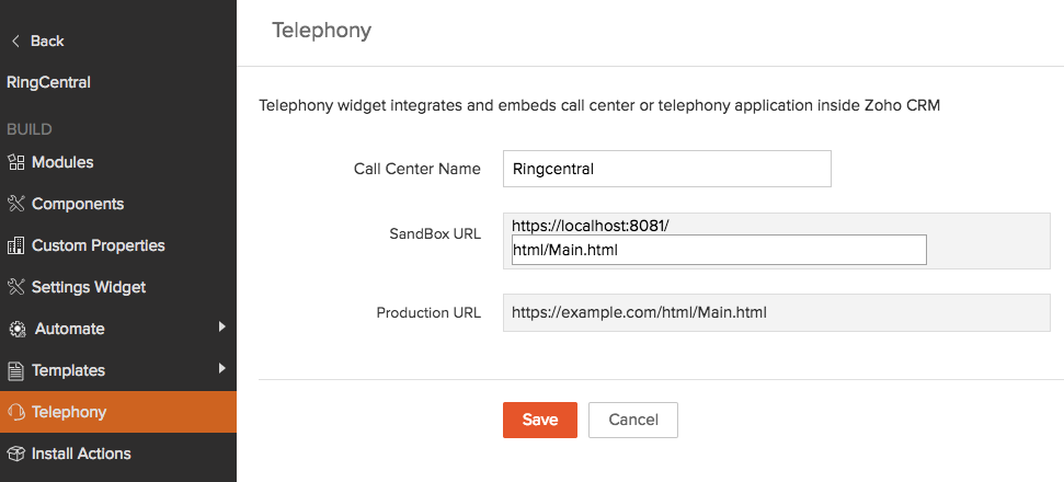 - This widget is used to integrate and embed any call center or telephony application inside Zoho CRM application.
